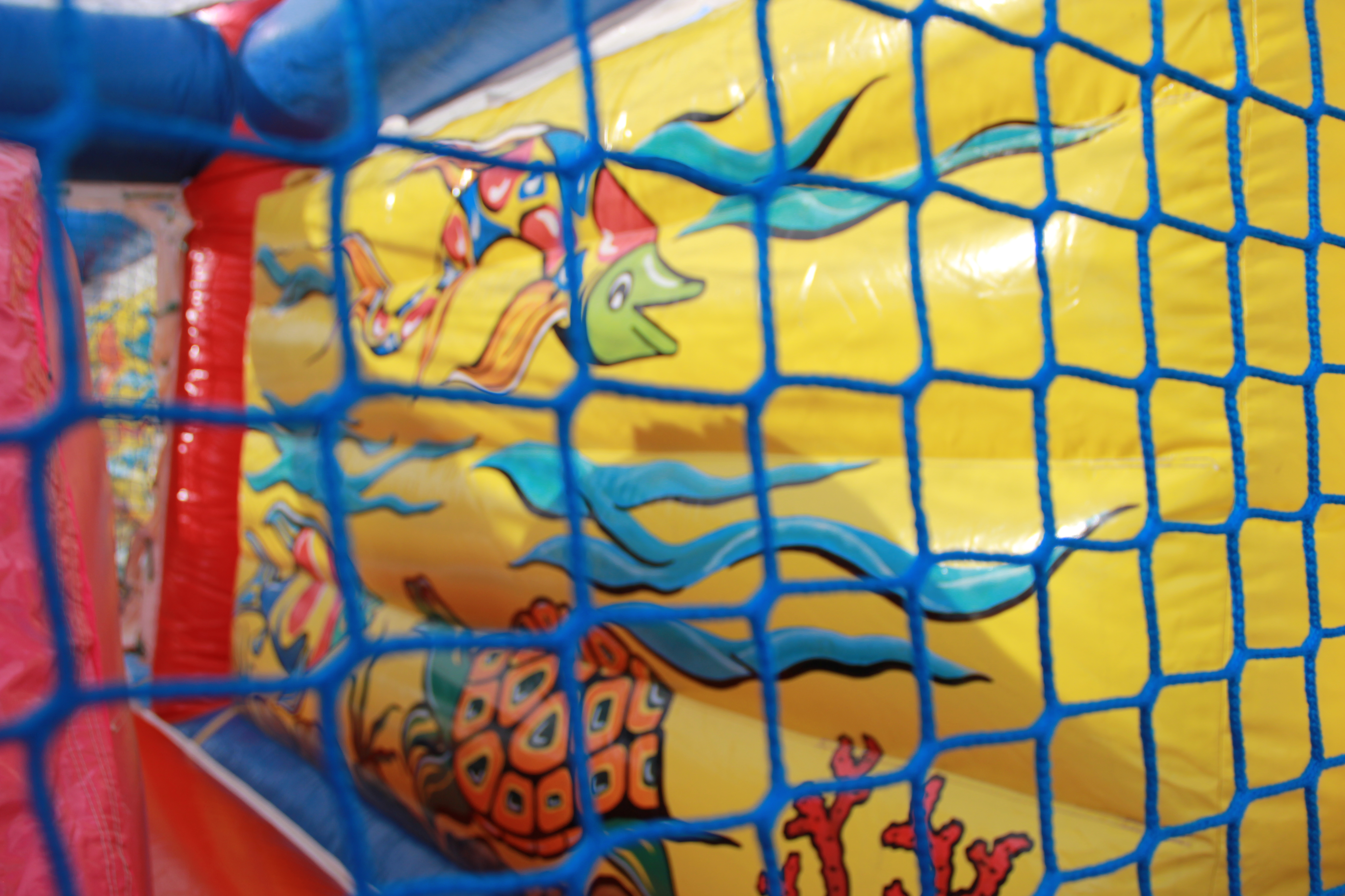 Begeef je in de onderzeese wereld met dit speeldorp “zeewereld”! Een heel amusante afwisseling tussen glijbaan, klimmuur, reuzenpoef en obstakels! Volledig afgesloten door een gaasnet, wat zorgt voor extra veiligheid!